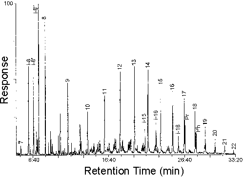 useful fingerprint for characterizing petroleum derivatives (Kaplan and Galperin, 1996).